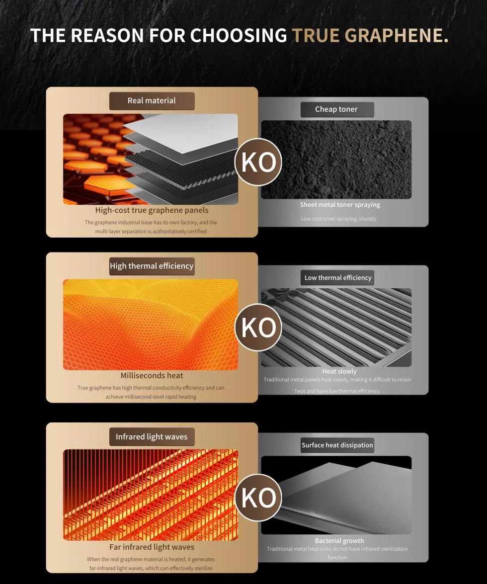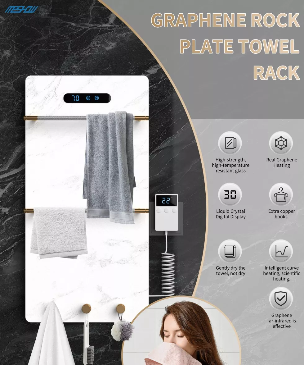 Как поставщик в отрасли графена, Meshow продолжает исследовать новые идеи. Эта стойка из черного графена рок-полотенца имеет авангардную внешность и естественный узор, который подчеркивает элегантность ванной комнаты. Он обладает характеристиками анти-удара, анти-проспекты, высокой температурной устойчивости, устойчивости к влажности и износа. Он долговечен и прост в обслуживании, сияет как новое с одним прикосновением. Оснащенные борьбой против утечки и чрезмерной защитой температуры, точный контроль температуры для предотвращения утечки, обеспечения безопасности и предотвращения высокой температуры.
