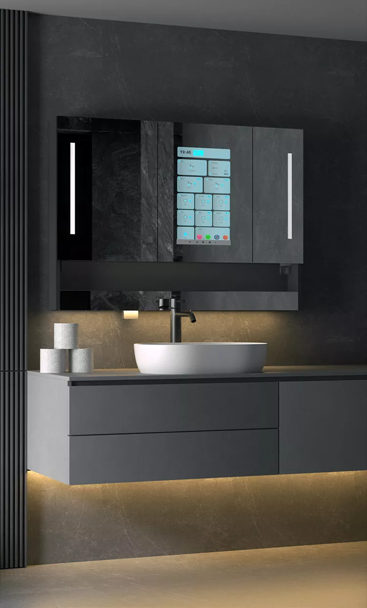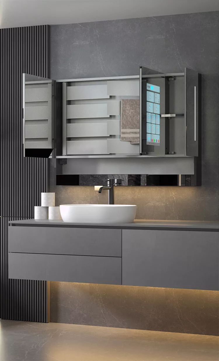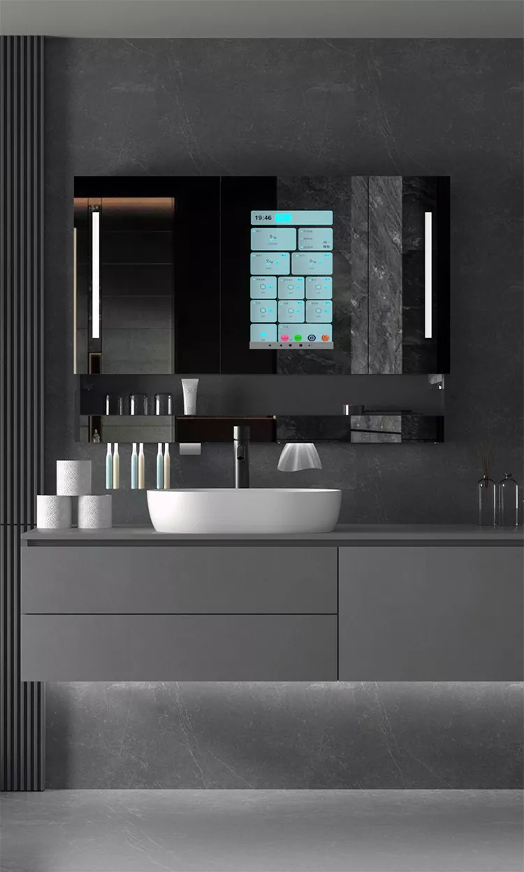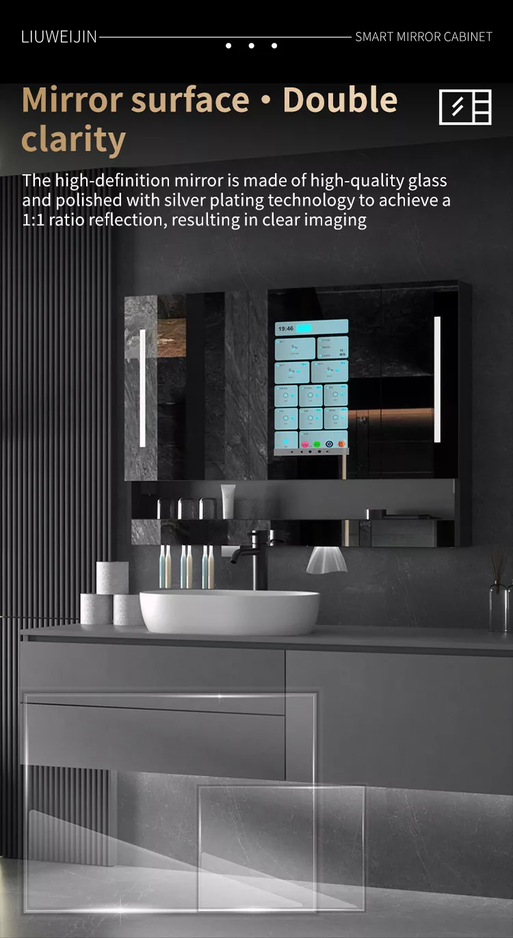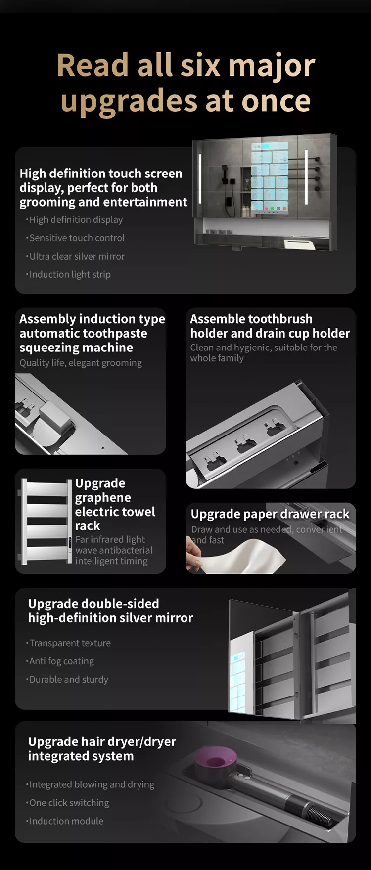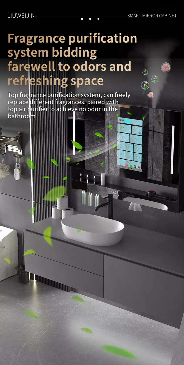 Этот зеркальный шкаф с сплавным сплавным материалом для сплавов, который является прочным и влажным зеркальным зеркальным зеркальным зеркальным зеркальным зеркальным зеркальным зеркальным зеркальным зеркальным зеркальным зеркальным шкафом. Экран, индукционное дезинфицирующее средство для рук, зеркальная система дефрога, Центр управления типом Ченга. Роскошная модель оснащена графеновым отоплением и сушильной стойкой, интеллектуальной системой ароматических ароматов и системой очистки воздуха. В дополнение к большому экрану поддерживает аудио и видео развлечения, дисплей погоды и времени, загрузку приложения и т. Д., Чтобы обогатить вашу жизнь.
