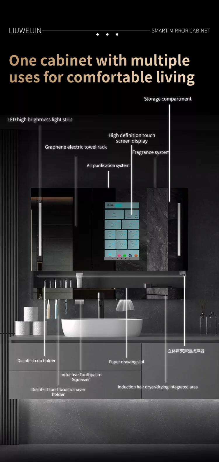 Liuwei Jinshi Graphene Intelligent Bath Mirror Cabinet делает ваш способ промывания, чистящий и свежий, а также более удобная жизнь.